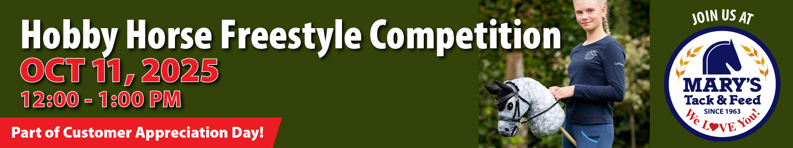 We look forward to having you compete in this year's Customer Appreciation Day Hobby Horse Freestyle Competition! Please take a moment to send us a little more information about yourself, the name of your Hobby Horse and the song you have chosen to perform to.